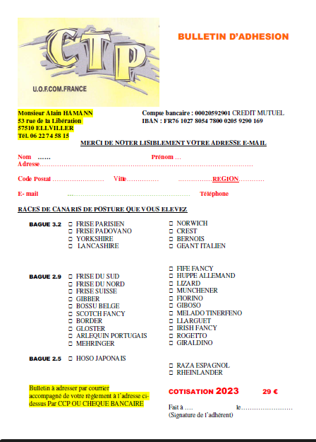 Afin de Réaliser un demande d’adhésion, merci de compléter le bulletin d’adhésion et de le retourné avec le règlement à l’adresse ci dessous: Monsieur Alain Hamann53 rue de la libération57510 ELLVILLER Bulletin d’adhésion